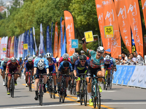 上午9點(diǎn)半,來自中國(guó)、美國(guó)、澳大利亞、法國(guó)、泰國(guó)、印度尼西亞等國(guó)家以及中國(guó)港澳臺(tái)地區(qū)等25個(gè)國(guó)家和地區(qū)的117名專業(yè)自行車手以上猶縣文體中心為起點(diǎn),途經(jīng)猶江大道、文峰南路、迎賓大道、希望大橋等地,在上猶縣城繞5圈后一路向西騎行至陡水湖國(guó)家級(jí)森林公園繞2圈后折返上猶縣文體中心進(jìn)行終點(diǎn)沖刺,全程89.7公里。經(jīng)過兩個(gè)多小時(shí)速度與耐力的比拼后,來自德國(guó)助力車隊(duì)的小個(gè)子選手盧卡斯?卡斯滕森率先沖線獲得冠軍,第二、三名分別是中國(guó)香港捷迅車隊(duì)選手瑞安?威廉?羅特和澳大利亞新南威爾士車隊(duì)選手班杰明?盧克?哈。最佳大中華(粉紅冠軍衫)獲得者是在第九屆環(huán)鄱賽上表現(xiàn)優(yōu)異、江西首支本土車隊(duì)――中國(guó)江西新力物業(yè)車隊(duì)的選手彭源堂;個(gè)人總成績(jī)(藍(lán)冠軍衫)獲得者是本站冠軍盧卡斯?卡斯滕森;登山王(圓點(diǎn)冠軍衫)穿在了烏克蘭飛銳車隊(duì)選手米阿格馬蘇倫?巴桑丘身上;沖刺王(橙冠軍衫)則被美國(guó)瑪吉斯野生世代洲際車隊(duì)選手肯特?貝爾納迪尼?羅斯收入囊中。團(tuán)體第一名是本站冠軍所在的德國(guó)助力車隊(duì)。